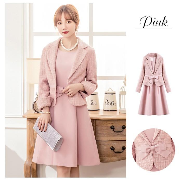 入学式 スーツ ママ シャネルカラー ワンピース ホワイト ピンク 春色 Cs 1930